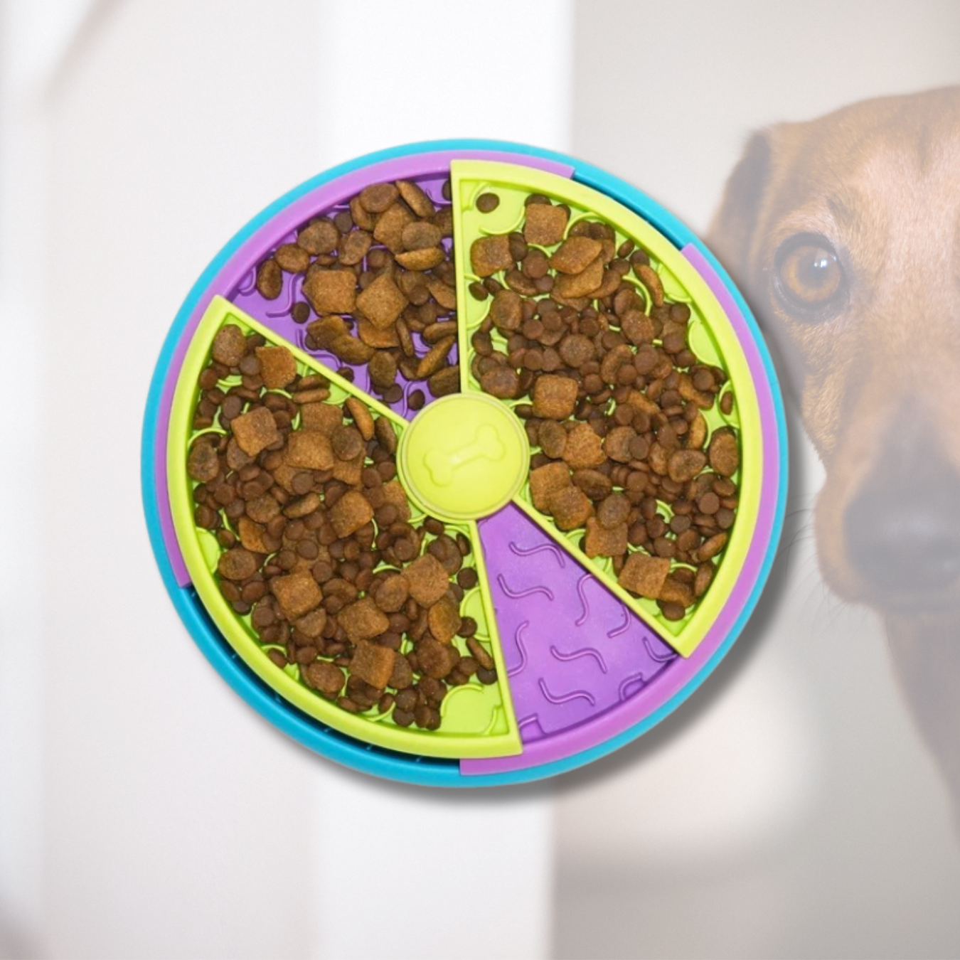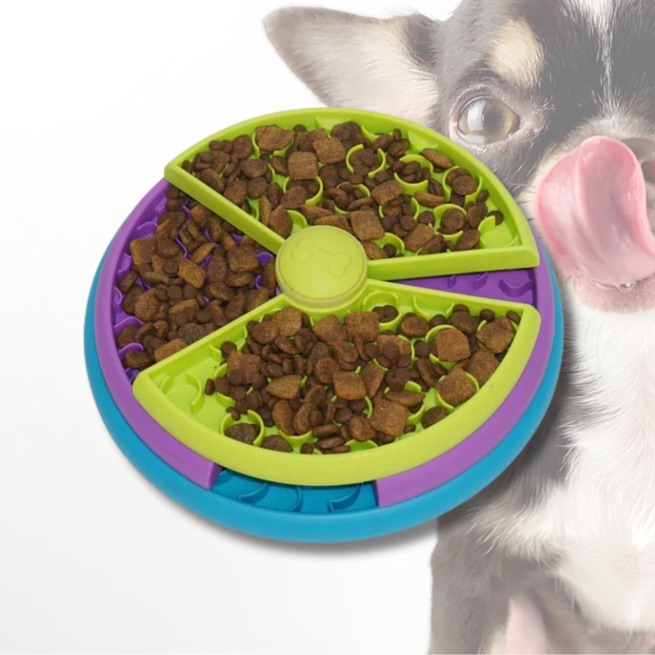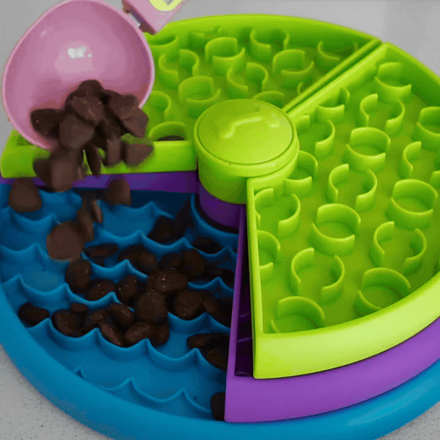 Die SlowBowl verlangsamt das Fressen, indem das Futter in den einzelnen Vertiefungen und beweglichen Ebenen verteilt wird. Dadurch wird das Schlingen verhindert und die Verdauung unterstützt.