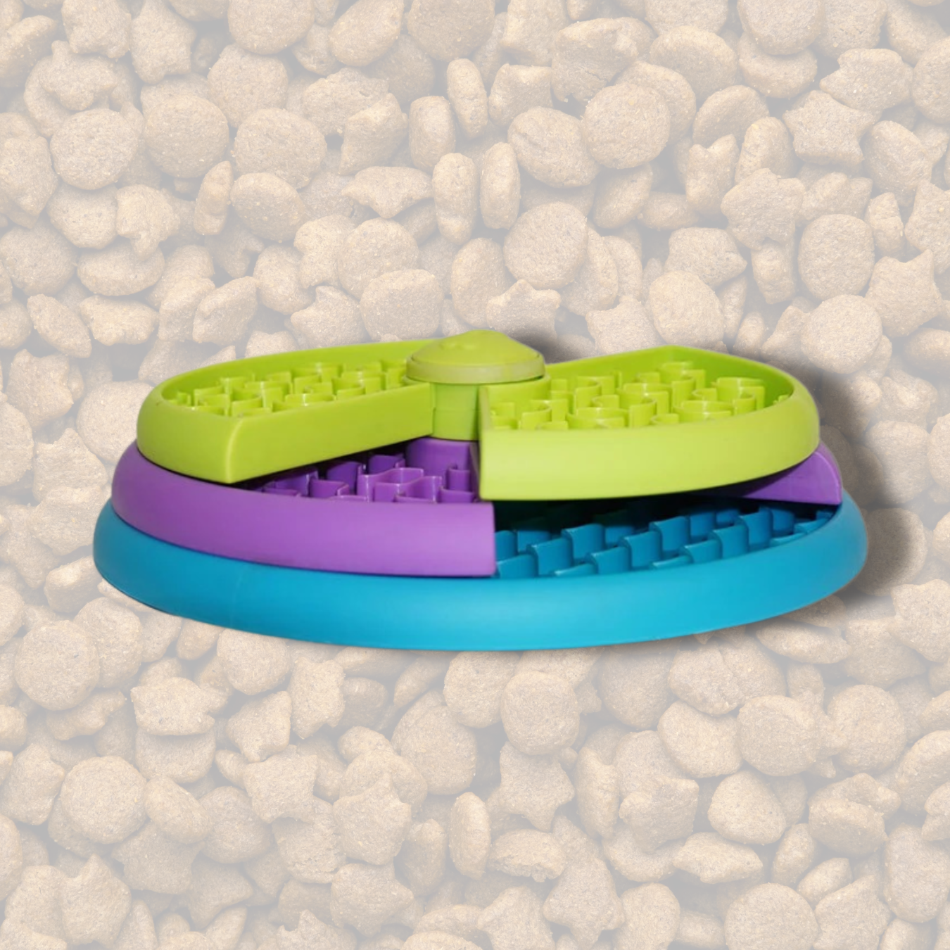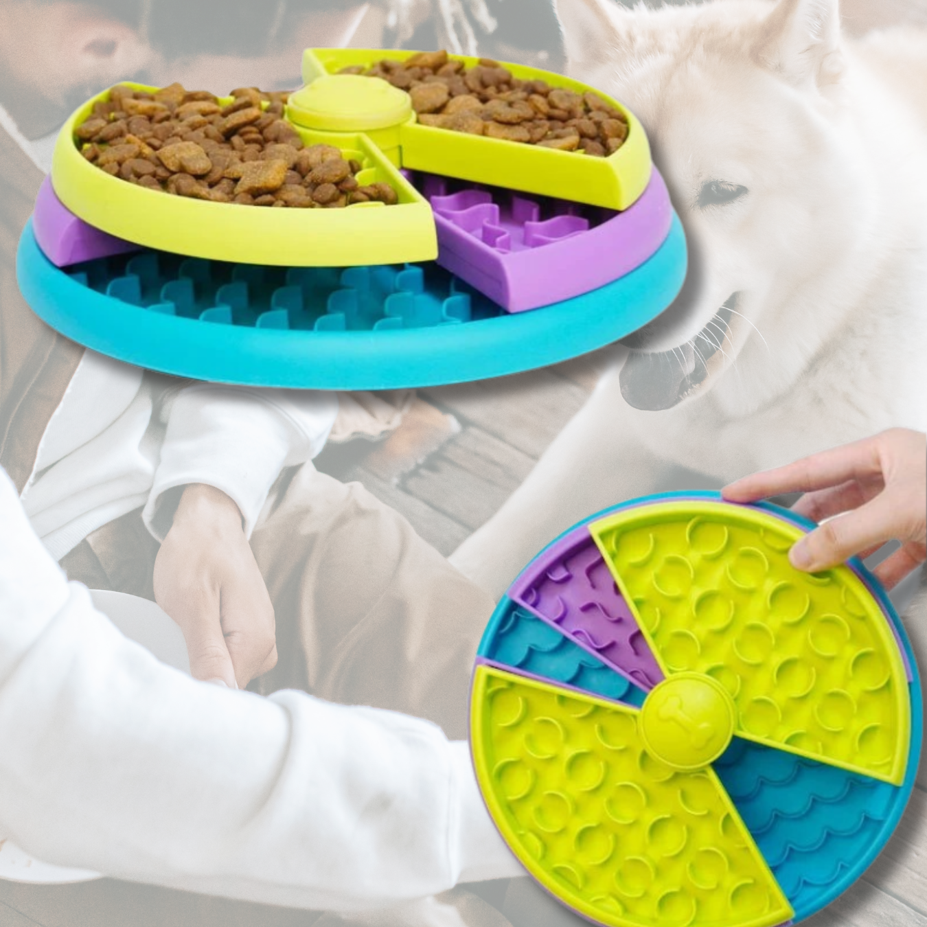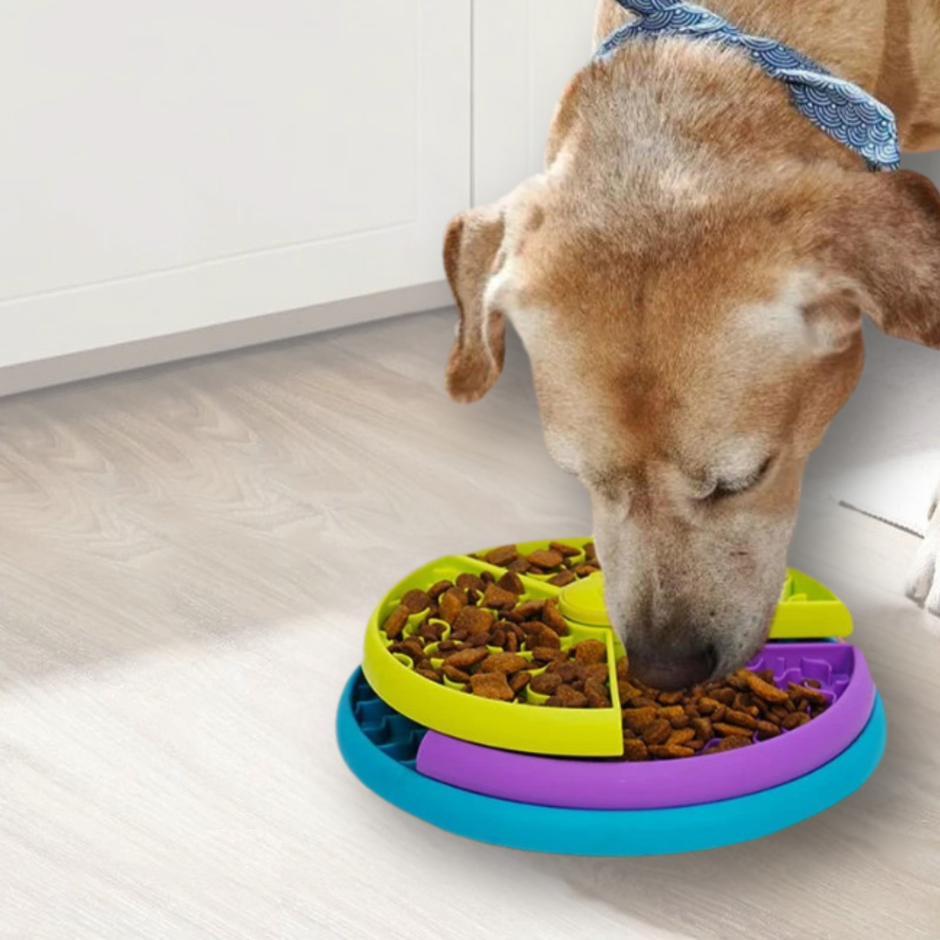 Die SlowBowl verlangsamt das Fressen, indem das Futter in den einzelnen Vertiefungen und beweglichen Ebenen verteilt wird. Dadurch wird das Schlingen verhindert und die Verdauung unterstützt.